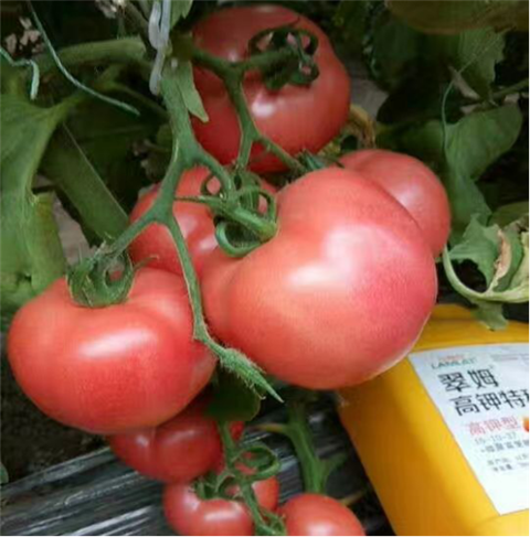 番茄轉色問題第三個原因是病蟲害造成的,番茄在轉色期,受到粉虱等害蟲危害,也會造成番茄的轉色差。后來通過2次的使用拉姆拉公司的翠姆高鉀特種肥的番茄轉色方案,我們回訪基地老板很是滿意,轉色問題解決了,因為翠姆高鉀特種肥的鉀肥采用磷酸二氫鉀和聚磷酸鉀為原料,鉀元素吸收利用率更高;鉀、鈣、硼、鎂同時協同補充,解決元素拮抗工藝;添加足量微量元素,鐵、鋅、錳,鉬;特別添加硅和鈦元素,核心成分---微聚富里酸,改善土壤,養根壯根;特別添加DL-苯丙氨酸型氨基酸促進茄紅素和花青素的合成,促進果實中糖分轉化進程,通過補充營養促進果實著色,提升果品品質。